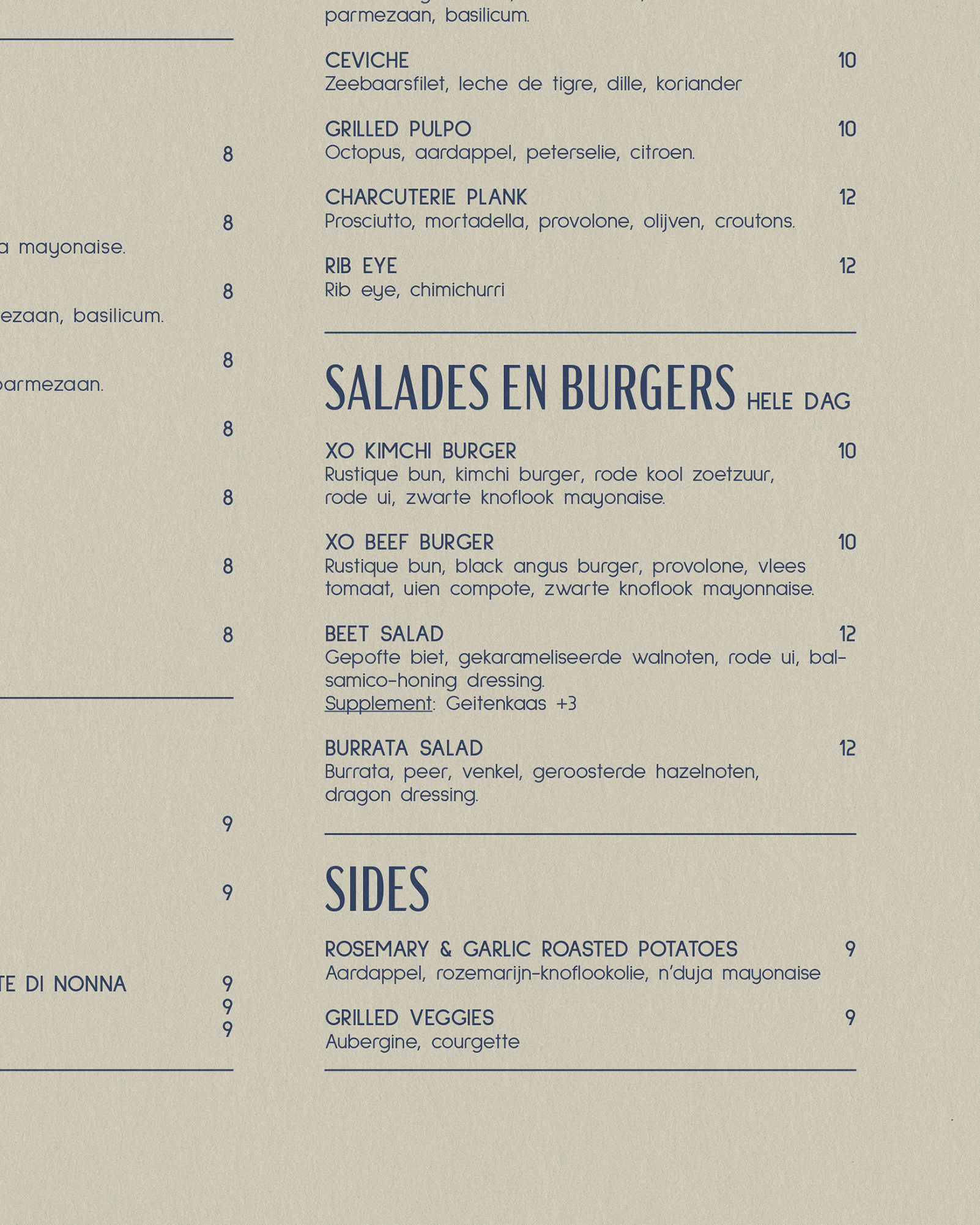 Xo Haarlem is where dining, drinking and dancing come together in the historic heart of the city. Their menu draws inspiration from across the globe, while weekends transform the space into Xo by Night. Commissioned by Studio Lotto, with Lotte van de Hoef as Creative Director and Isabella Favier as Art Director and Graphic Designer, we developed a new visual identity that captures both sides of Xo — the laid-back daytime energy and the elevated nightlife experience. The result is a brand that moves naturally from lunch to late night, while keeping its character and warmth at the center.